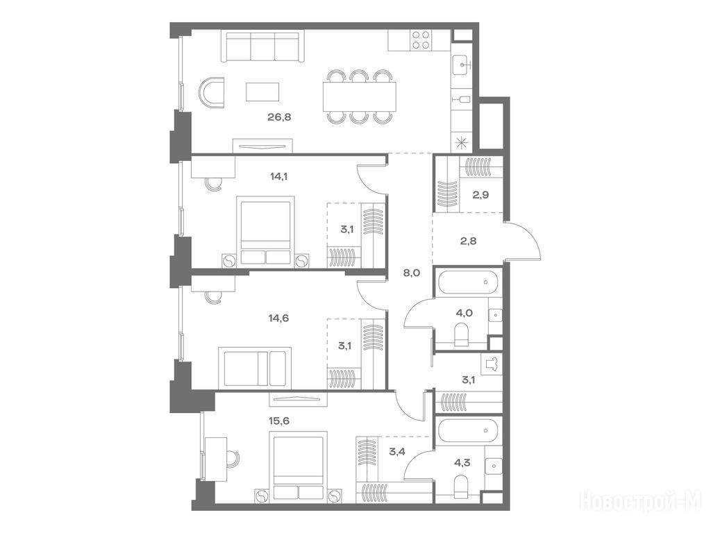Продается трехкомнатная квартира в новостройке ЖК SOUL (Соул) по адресу Москва, САО, Аэропорт, ул. Часовая, вл. 28, корп. 7. Общая площадь квартиры - 105.8 кв. м. Тип проекта, по которому построен дом — Монолитно-кирпичный, компания-застройщик — FORMA (Форма), ООО СЗ Часовая. Стоимость квартиры — 55 597 900 руб. Способы оплаты можно уточнить у продавца. Срок сдачи — 1 квартал 2029. Более подробная информация по телефону.