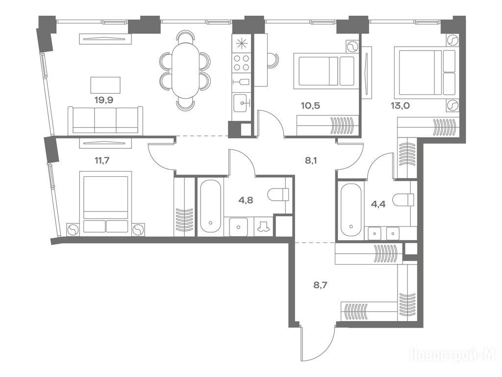 А планировки, так вообще. И два окна в спальне в пол, и кому это мало - окно в ванной комнате.
