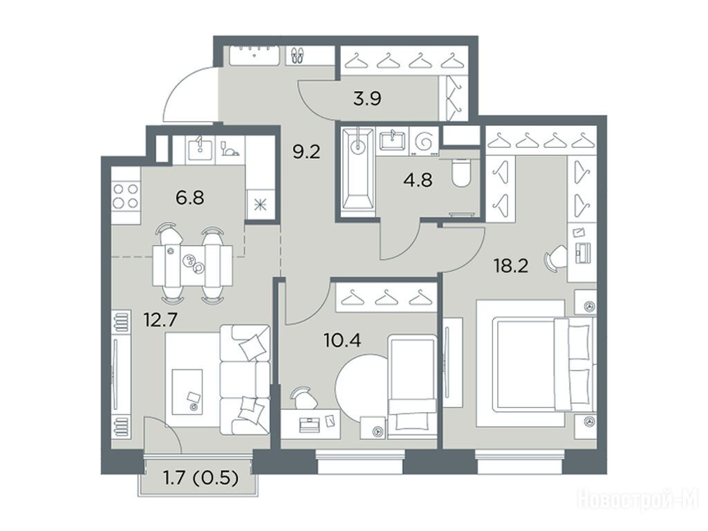 Тут шикарные квартиры - от студий до пятикомнатных пентхаусов, площадь от 28 до 103 кв. м. Во всех квартирах увеличенная площадь остекления, большие кухни, просторные гостиные и продуманные гардеробные. Есть варианты с мастер-спальнями, угловыми окнами и постирочными, а еще квартиры со вторым светом, каминными залами, личными террасами, патио, зимними садами, тремя спальнями и дополнительными санузлами.
