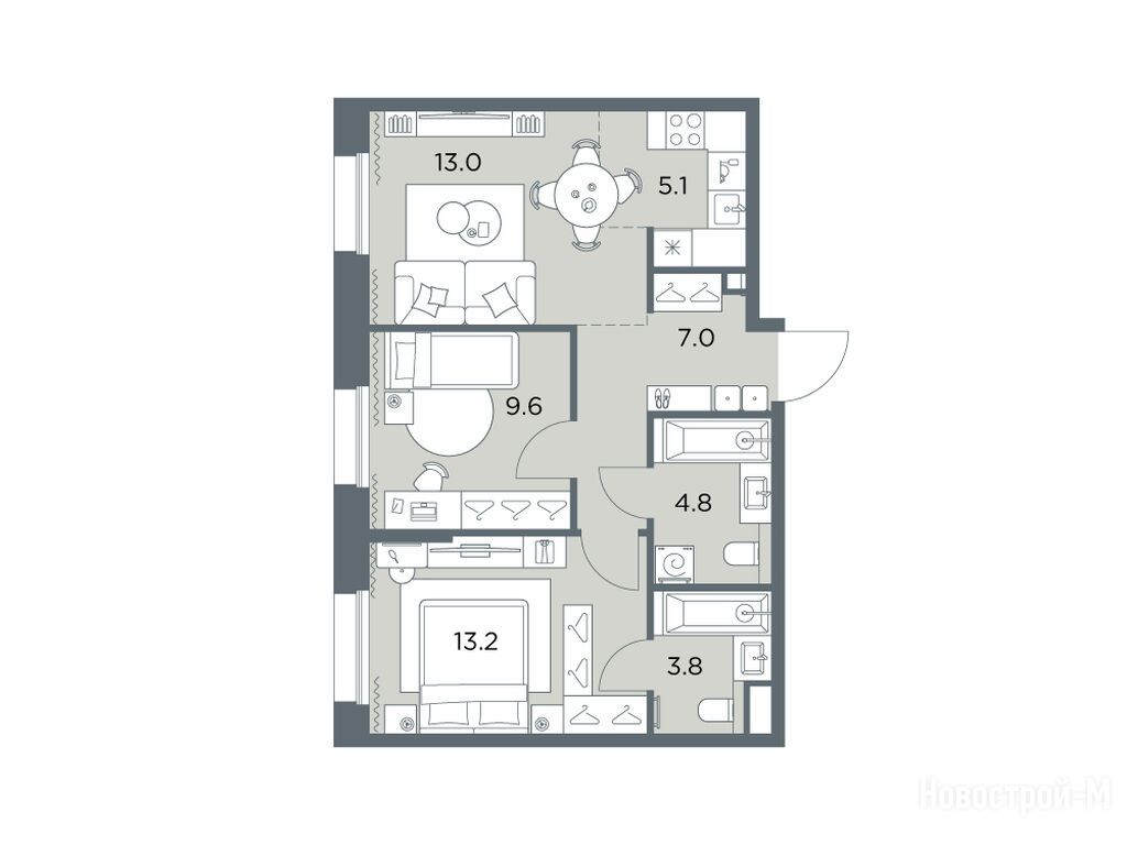 Тут шикарные квартиры - от студий до пятикомнатных пентхаусов, площадь от 28 до 103 кв. м. Во всех квартирах увеличенная площадь остекления, большие кухни, просторные гостиные и продуманные гардеробные. Есть варианты с мастер-спальнями, угловыми окнами и постирочными, а еще квартиры со вторым светом, каминными залами, личными террасами, патио, зимними садами, тремя спальнями и дополнительными санузлами.