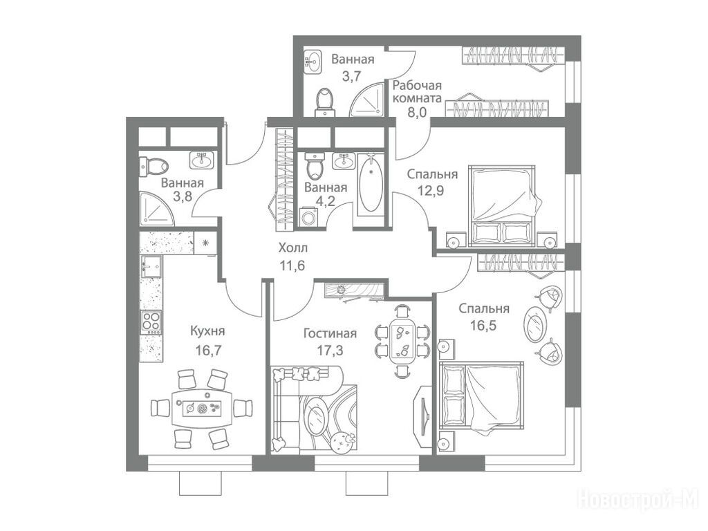 Продается трехкомнатная квартира в новостройке ЖК Stellar City (Стеллар Сити) по адресу Москва, ЗАО, Можайский, Сколковское ш., корп. 4. Общая площадь квартиры - 94.7 кв. м. Тип проекта, по которому построен дом — Монолит, компания-застройщик — ООО СЗ БАСТИОН, Ташир ГК. Стоимость квартиры — 38 116 750 руб. Способы оплаты можно уточнить у продавца. Срок сдачи — 4 квартал 2026. Более подробная информация по телефону.