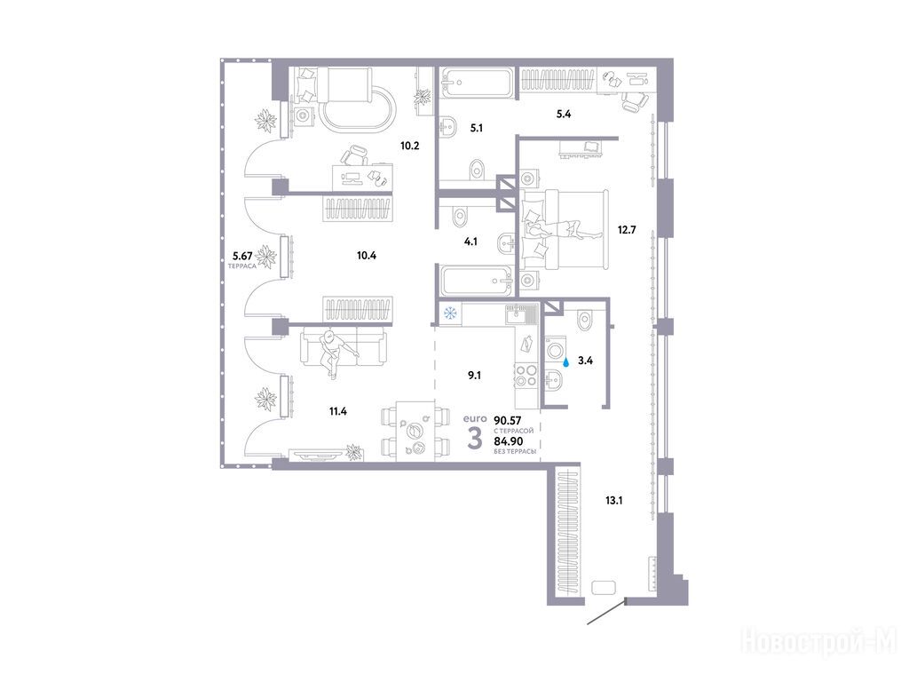 Продается трехкомнатная квартира в новостройке ЖК «Страна. Озерная» по адресу Москва, ЗАО, Очаково-Матвеевское, ул. Озёрная 42-44. Общая площадь квартиры - 90.57 кв. м. Тип проекта, по которому построен дом — Монолит, компания-застройщик — Страна Девелопмент. Стоимость квартиры — 54 090 000 руб. Способы оплаты можно уточнить у продавца. Срок сдачи — 2 квартал 2026. Более подробная информация по телефону.