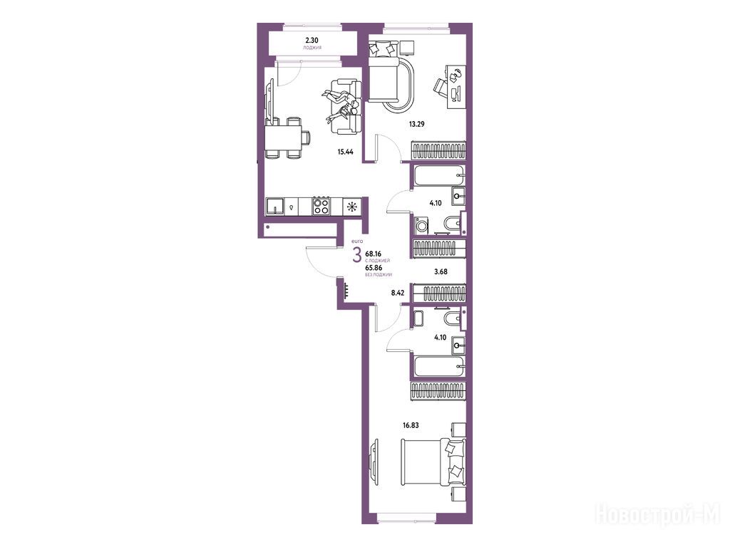 Продается трехкомнатная квартира в новостройке ЖК «Страна. Парковая» по адресу Московская область, Мытищи городской округ, Мытищи, ул. Комарова-Институтская. Общая площадь квартиры - 68.16 кв. м. Тип проекта, по которому построен дом — Монолитно-каркасный, компания-застройщик — Страна Девелопмент. Стоимость квартиры — 22 080 000 руб. Способы оплаты можно уточнить у продавца. Срок сдачи — 3 квартал 2026. Более подробная информация по телефону.