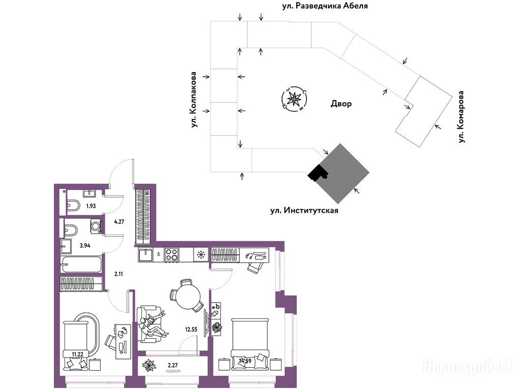 ул. Комарова-Институтская, корп. Дом Перов, секция 1