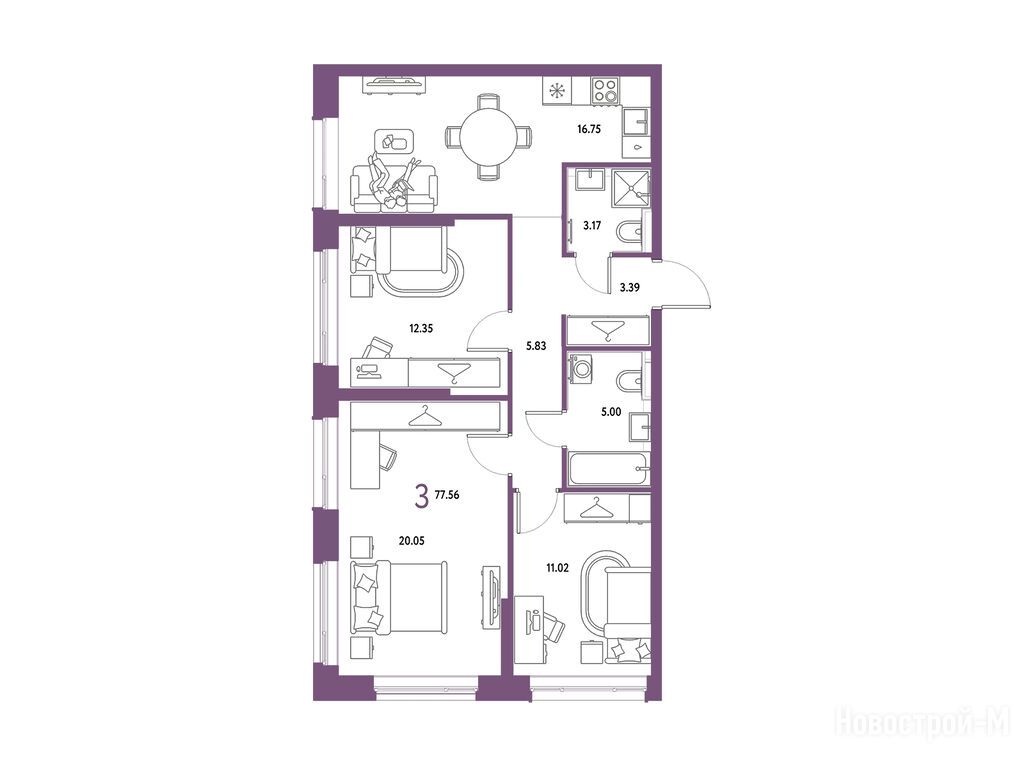 Продается трехкомнатная квартира в новостройке ЖК «Страна. Парковая» по адресу Московская область, Мытищи городской округ, Мытищи, ул. Комарова-Институтская, корп. Дом Васнецов. Общая площадь квартиры - 77.56 кв. м. Тип проекта, по которому построен дом — Монолитно-каркасный, компания-застройщик — Страна Девелопмент. Стоимость квартиры — 26 100 000 руб. Способы оплаты можно уточнить у продавца. Срок сдачи — 4 квартал 2027. Более подробная информация по телефону.