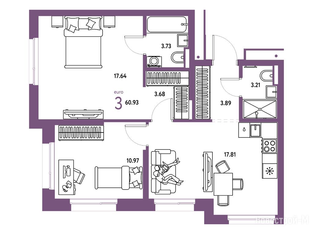 Продается трехкомнатная квартира в новостройке ЖК «Страна. Парковая» по адресу Московская область, Мытищи городской округ, Мытищи, ул. Комарова-Институтская. Общая площадь квартиры - 60.93 кв. м. Тип проекта, по которому построен дом — Монолитно-каркасный, компания-застройщик — Страна Девелопмент. Стоимость квартиры — 20 710 000 руб. Способы оплаты можно уточнить у продавца. Срок сдачи — 3 квартал 2026. Более подробная информация по телефону.