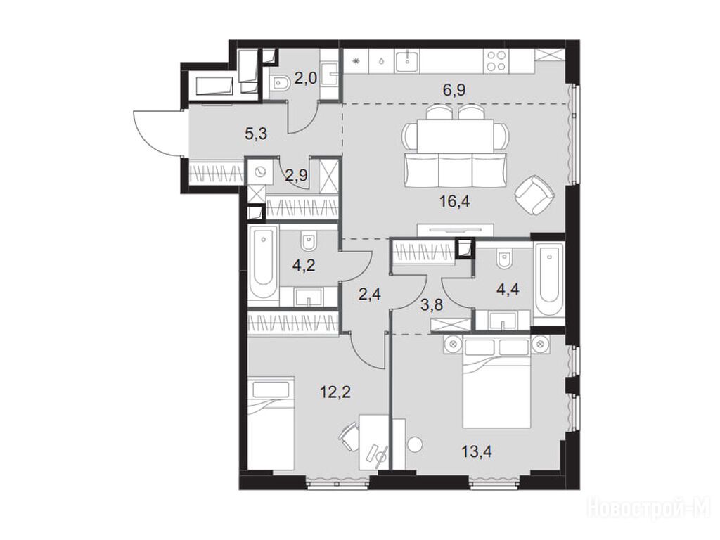 Продается трехкомнатная квартира в новостройке ЖК «Сидней Сити» по адресу Москва, СЗАО, Хорошево-Мневники, район Хорошёво-Мнёвники, жилой комплекс Сидней Сити. Общая площадь квартиры - 73.9 кв. м. Тип проекта, по которому построен дом — Монолитно-кирпичный, компания-застройщик — ГК ФСК. Стоимость квартиры — 39 038 710 руб. Способы оплаты можно уточнить у продавца. Срок сдачи — 3 квартал 2027. Более подробная информация по телефону.