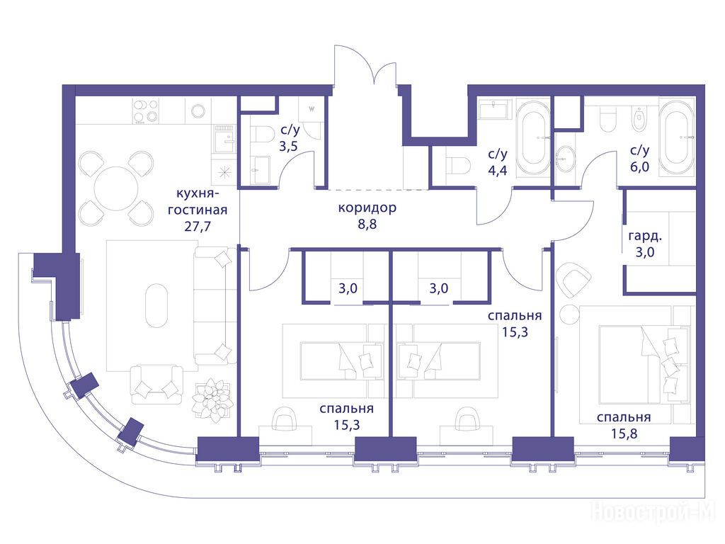 Продается трехкомнатная квартира в новостройке ЖК «Татарская 35» по адресу Москва, ЦАО, Замоскворечье, ул. Большая Татарская, д. 35. Общая площадь квартиры - 105.8 кв. м. Тип проекта, по которому построен дом — Монолитно-кирпичный, компания-застройщик — Донстрой. Стоимость квартиры — 148 966 400 руб. Способы оплаты можно уточнить у продавца. Срок сдачи — 1 квартал 2028. Более подробная информация по телефону.