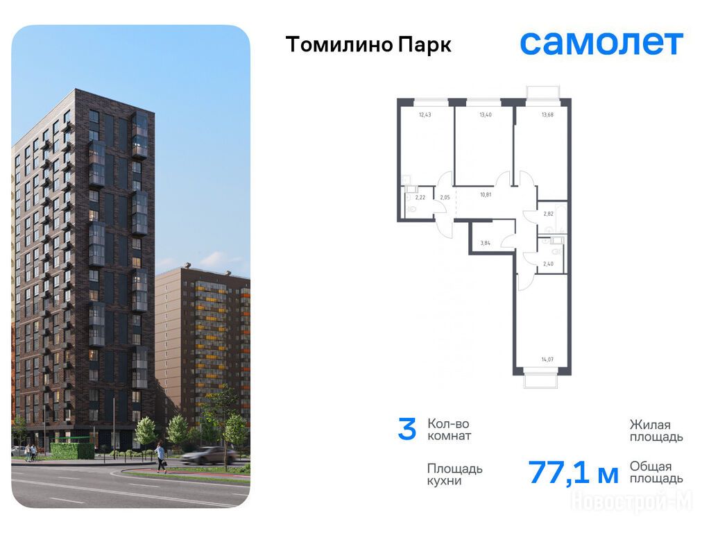 Продается трехкомнатная квартира в новостройке ЖК «Томилино Парк» по адресу Московская область, Люберцы городской округ, Томилино пос., ЖК «Томилино Парк», корп. 6.2. Общая площадь квартиры - 77.1 кв. м. Тип проекта, по которому построен дом — Монолитно-кирпичный, компания-застройщик — ООО СЗ «Самолет-Томилино», Группа «Самолет». Стоимость квартиры — 18 114 722 руб. Способы оплаты можно уточнить у продавца. Более подробная информация по телефону.