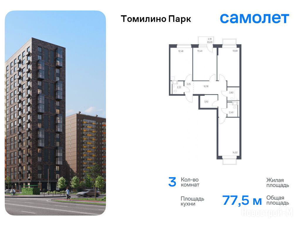 Продается трехкомнатная квартира в новостройке ЖК «Томилино Парк» по адресу Московская область, Люберцы городской округ, Томилино пос., ЖК «Томилино Парк», корп. 5.4. Общая площадь квартиры - 77.5 кв. м. Тип проекта, по которому построен дом — Монолитно-кирпичный, компания-застройщик — ООО СЗ «Самолет-Томилино», Группа «Самолет». Стоимость квартиры — 18 123 762 руб. Способы оплаты можно уточнить у продавца. Более подробная информация по телефону.