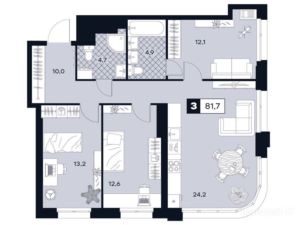 Продается трехкомнатная квартира в новостройке ЖК U2 (ЮТУ) по адресу Москва, СЗАО, Южное Тушино, ул. Лодочная, д. 27/2. Общая площадь квартиры - 81.7 кв. м. Тип проекта, по которому построен дом — Монолитно-кирпичный, компания-застройщик — ГК «Точно». Стоимость квартиры — 43 200 000 руб. Способы оплаты можно уточнить у продавца. Срок сдачи — 1 квартал 2028. Более подробная информация по телефону.