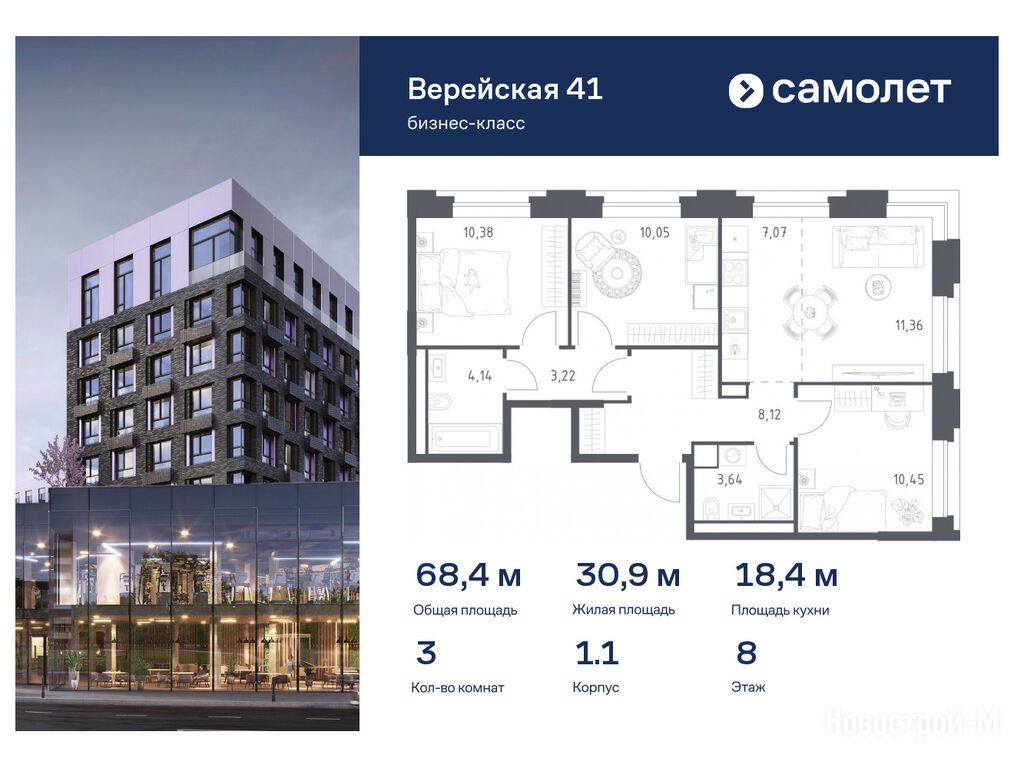 Продается трехкомнатная квартира в новостройке ЖК «Верейская 41» по адресу Москва, ЗАО, Можайский, ул. Верейская, д. 41, корп. 1.1. Общая площадь квартиры - 68.43 кв. м. Тип проекта, по которому построен дом — Монолитно-кирпичный, компания-застройщик — АО СЗ «Самолет-Верейская», Группа «Самолет». Стоимость квартиры — 43 235 511 руб. Способы оплаты можно уточнить у продавца. Срок сдачи — 2 квартал 2026. Более подробная информация по телефону.