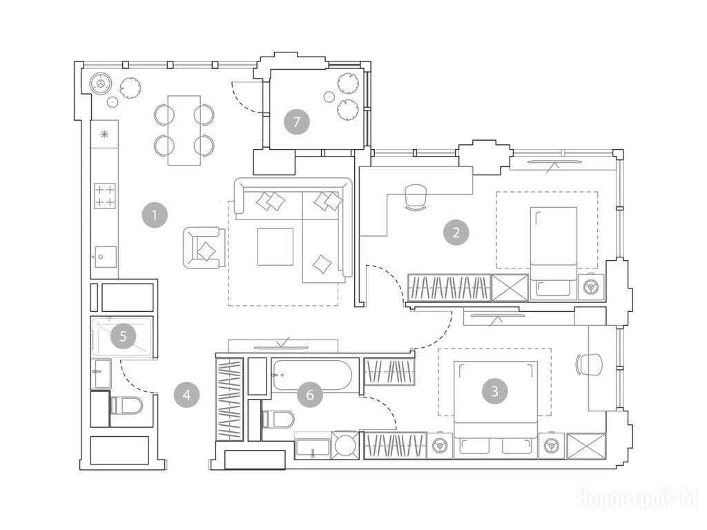 Выбирали квартиру с учетом, что у нас еще маленький ребенок. Плюс этого комплекса, что будет свой детсад, игровые комнаты внутри, а во дворе целый детский городок под навесом и даже скалодром. Для детского физ.развития это прям то, что надо.