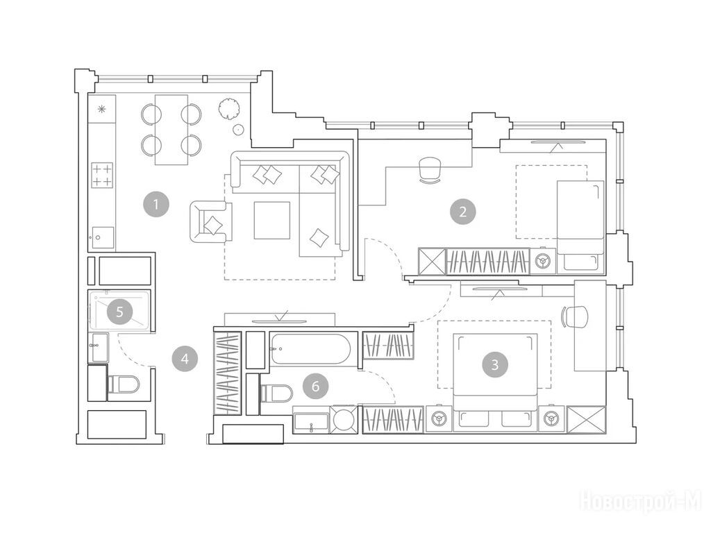 Выбирали квартиру с учетом, что у нас еще маленький ребенок. Плюс этого комплекса, что будет свой детсад, игровые комнаты внутри, а во дворе целый детский городок под навесом и даже скалодром. Для детского физ.развития это прям то, что надо.