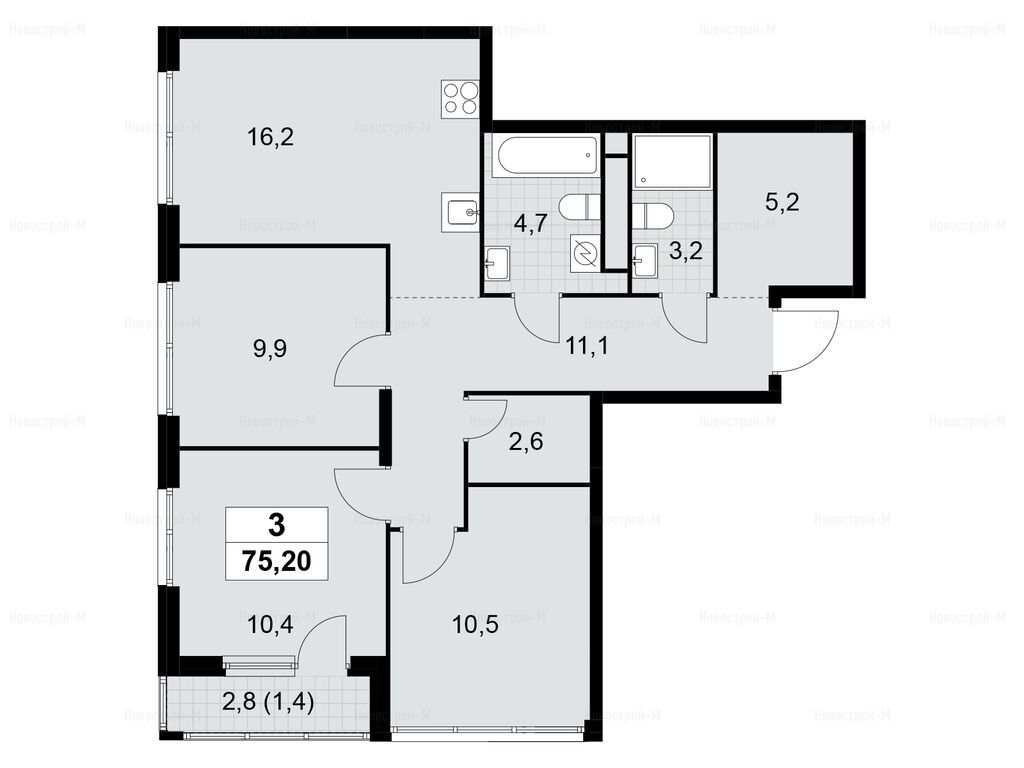 Продается трехкомнатная квартира в новостройке ЖК «Южные Сады» по адресу Москва, ЮЗАО, Южное Бутово, Жилой комплекс «Южные Сады», корп.2.2. Общая площадь квартиры - 75.2 кв. м. Тип проекта, по которому построен дом — Монолит,Железобетон, компания-застройщик — ООО «А101». Стоимость квартиры — 30 650 768 руб. Способы оплаты можно уточнить у продавца. Срок сдачи — 4 квартал 2025. Более подробная информация по телефону.