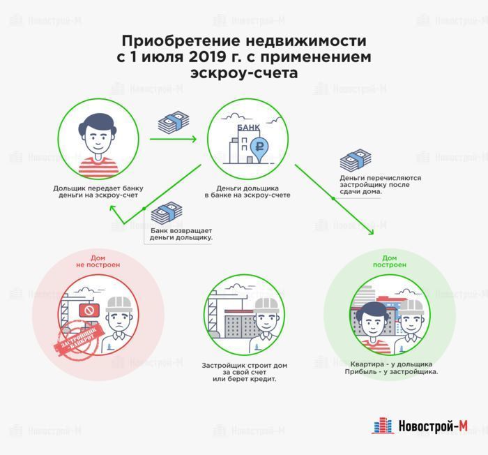 Подробнее о том, что такое эскроу-счет, как теперь будут продаваться новостройки и какие риски существуют для покупателей, читайте в этом материале Новострой-М.