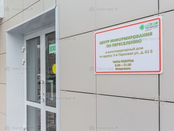 В дом по адресу 5-я Парковая улица, 62Б переедут жители сносимых пятиэтажных домов № 3 и 5 на улице Константина Федина, вечером 9 февраля 2018 года жильцы получат смотровые ордера. Сносимые дома находятся в 300 метрах от построенного дома. В шаговой доступности расположены детский сад «Ласточка» и школа №2033 (Владимирский корпус).