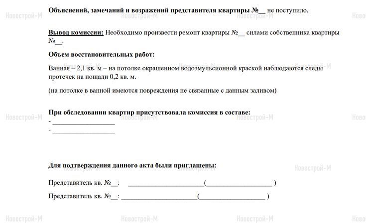 Следующий шаг: нужно составить акт, который должны подписать представитель управляющей компании и собственники каждой пострадавшей квартиры (тот, кто затопил, и тот, кого затопили).