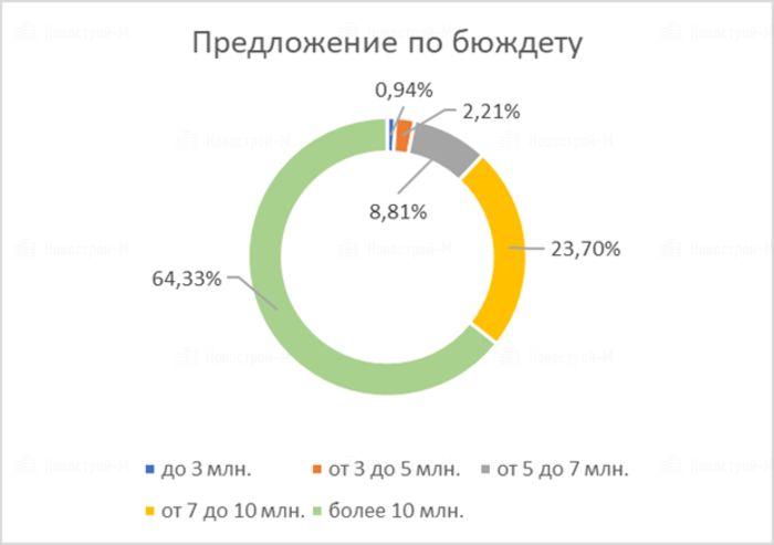 – на 2,1 п.п. и 3,8 п.п. соответственно уменьшилась доля лотов от 3 до 5 млн рублей и от 5 до 7 млн рублей;