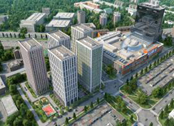 Михаил Миндлин, старший директор отдела продаж и приобретений офисной недвижимости Cushman & Wakefield, рассказывает, что, помимо офисов, проектом предполагается три уровня торговых помещений с якорным арендатором гипермаркетом «О’КЕЙ», фудкортом, кинотеатром. Будет построен многоуровневый подземный паркинг. Комплекс апартаментов будет представлять собой пять 26-этажных зданий, жителей будет немало, и без социальной инфраструктуры не обойтись. На первых этажах многоэтажек будут расположены детский сад и центр развития, фитнес-клуб, кафе, рестораны, службы бытового сервиса.