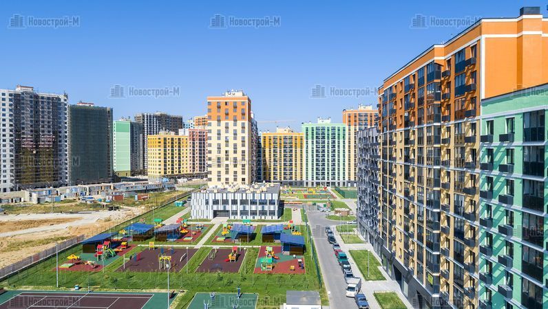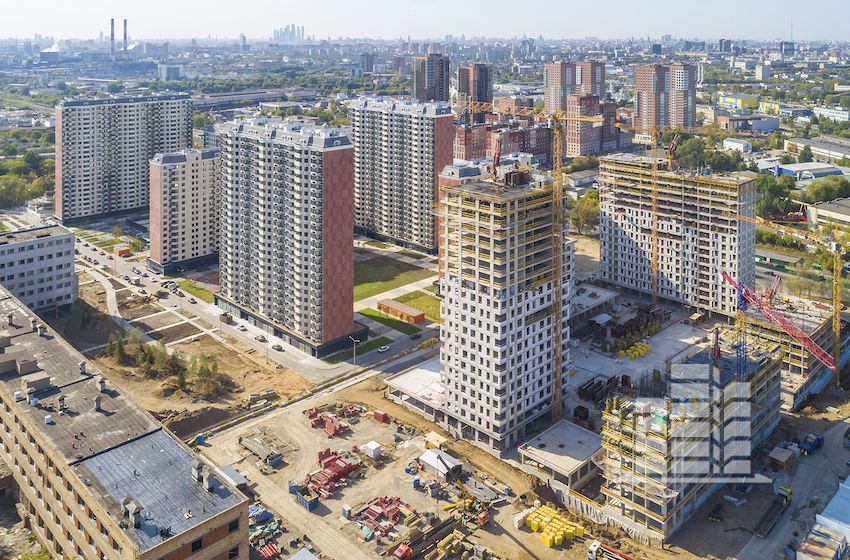 Вид на ЖК «Кварталы 21/19» и ЖК Sreda. Снято Новострой-М в августе 2018 года