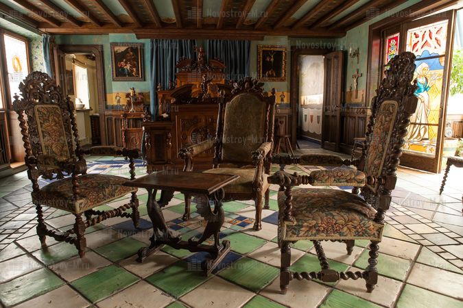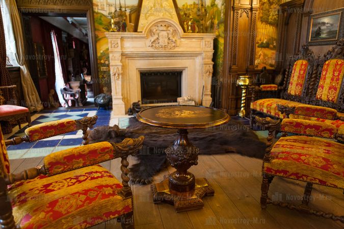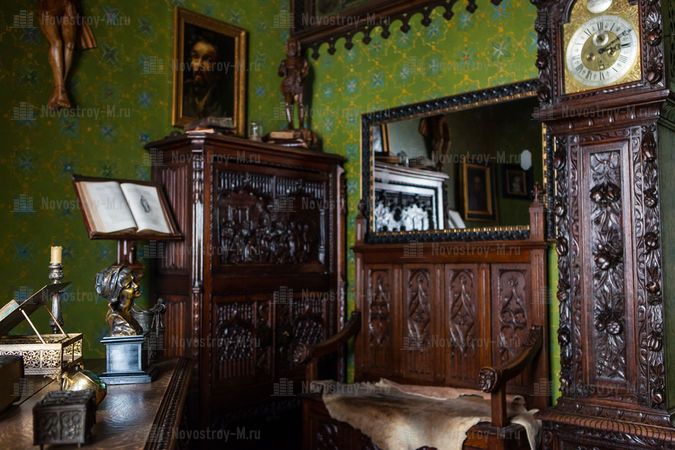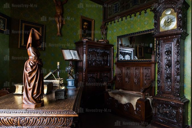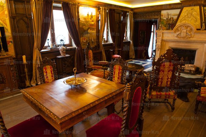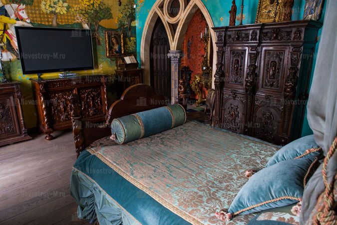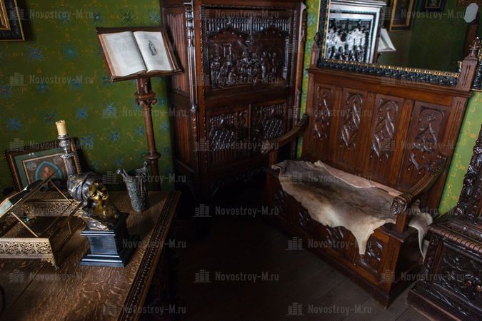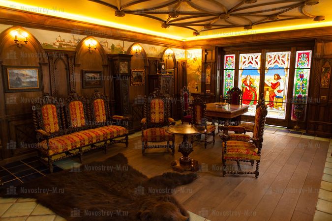 Я собирал интерьер долго, покупал вещи на аукционах, выставках, в разных магазинах. Это заняло четыре года. В готических интерьерах практически вся мебель – антиквариат, большая часть которого относится к XVII веку. К шкуре медведя, это, разумеется, не относится, шкуры так долго не живут.