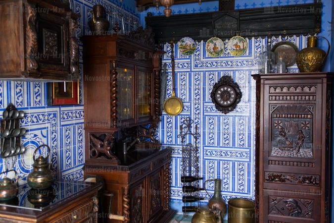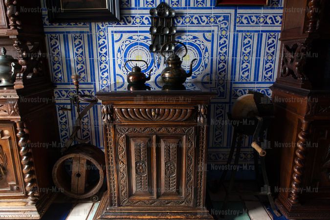 Расскажите, пожалуйста, более подробно о небольшой кухне в готических интерьерах. Откуда там мебель, посуда?