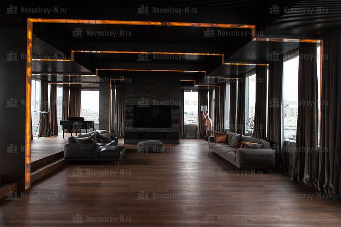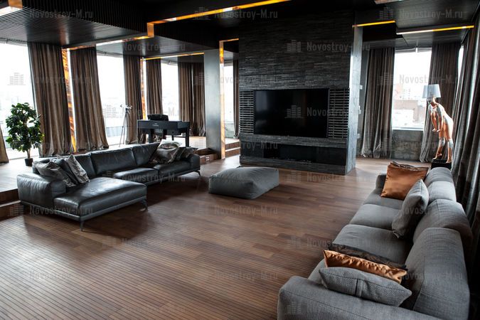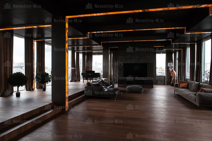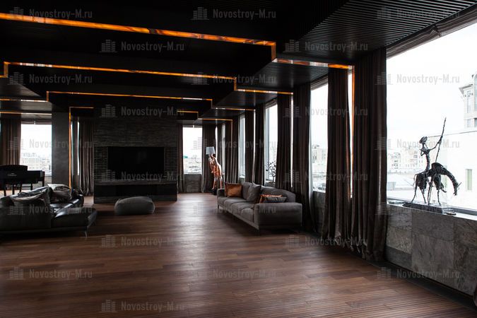 Свои помещения я разделил на несколько зон. Интерьер верхнего этажа в стиле хай-тек, самом подходящем для квартиры с большими окнами. Оттуда открывается великолепная панорама на город. Для меня это одновременно и студия, там я иногда работаю, в основном над портретами официальных лиц. В этом интерьере и я, и мои клиенты всегда чувствуем себя свободно.