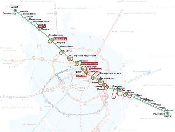 МЦД-3 «Зеленоград – Раменское» протяженностью 88 км свяжет Ленинградское и Казанское направления, благодаря этой линии разгрузится Ленинградское шоссе. На маршруте запланированы 43 станции. МЦД-3 намечено запустить в конце 2021-го – начале 2022 года. Еще три линии, по предварительным планам, могут быть запущены до 2023 года.