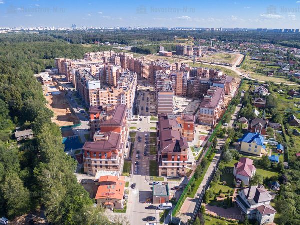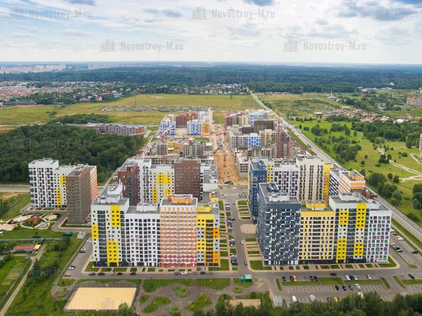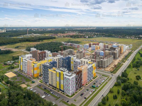ЖК Микрогород «В лесу» – интересный проект комфорт-класса. Концепция разработана архитектурным бюро SPEECH. Реализована идея свободных от машин дворов, квартиры продаются с машиноместом в подземном паркинге. Также проект отличают цветные фасады и необычная форма окон. Основной плюс – близость к метро «Пятницкое шоссе», всего в 1,8 км от станции, к которой застройщик специально проложил пешеходную дорожку.