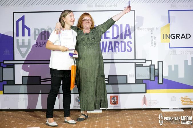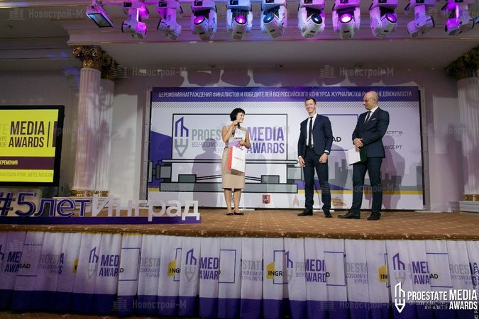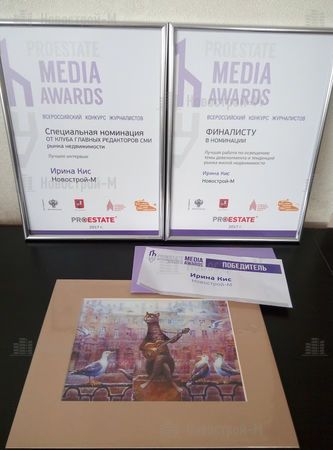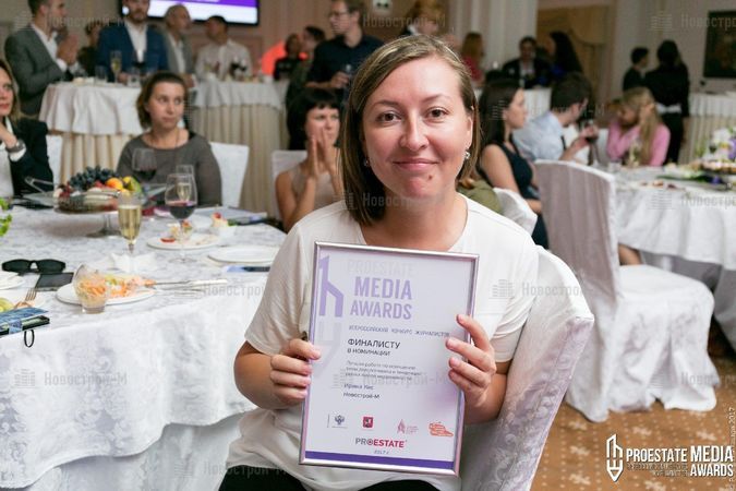 Церемония награждения победителей Всероссийской профессиональной премии PROESTATE Media Awards-2017 для журналистов, которые пишут о рынке недвижимости, состоялась 13 сентября в отеле Radisson Royal Hotel Moscow. Главный редактор портала Новострой-М Ирина Кис стала финалистом в номинации: «Лучшая работа по освещению темы девелопмента и тенденций рынка жилой недвижимости», а также получила специальную награду Клуба главных редакторов СМИ рынка недвижимости за интервью с Карри Гуггенбергер, признанное лучшей из представленных на конкурс работ.