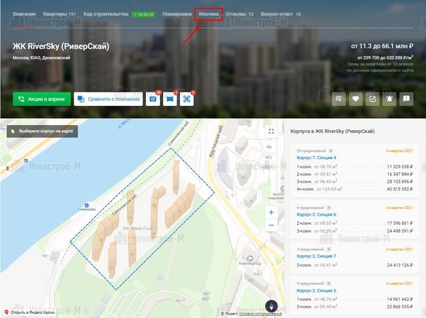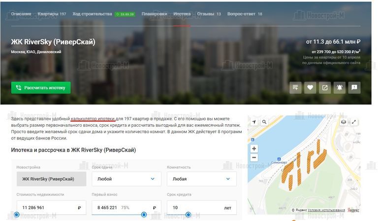 Ипотека: графики платежей, требования к заемщику, ставки, специальные условия. Вся эта информация, включая кредитный калькулятор, список банков, выдающих ипотеку по этому проекту, статистику по количеству выданных кредитов за год, шаблоны ипотечных анкет, вы найдете в карточке выбранного вами ЖК.