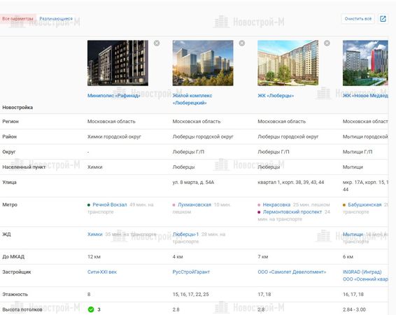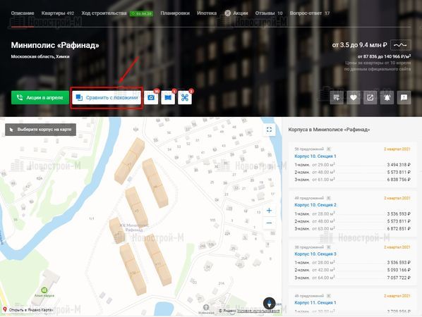 Также собрать новостройки для сравнения вы можете вручную: для этого нужно зайти в раздел «Добавить к сравнению» в карточке каждого интересующего вас объекта.