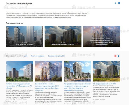 Не забудьте зайти в раздел «Экспертиза проекта» в главном меню сайта Новострой-М: там мы публикуем независимые исследования о жилых комплексах с комментариями экспертов рынка.