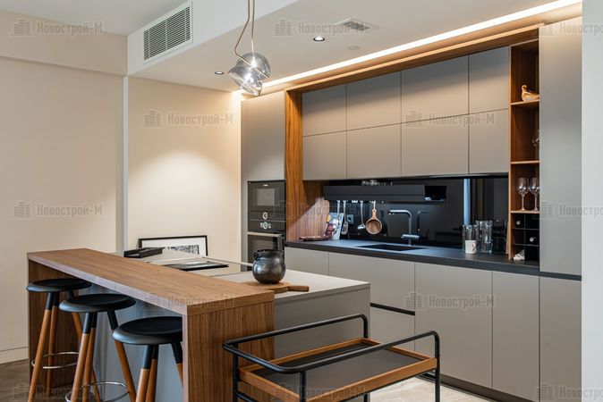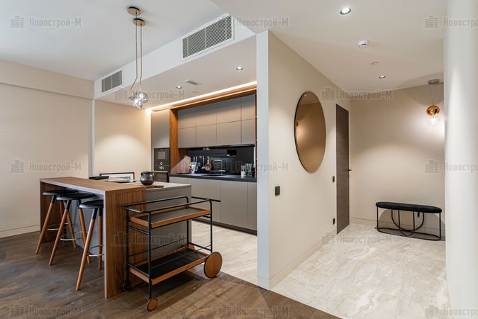 Однако даже готовые к проживанию апартаменты или квартиры необходимо обустроить и оснастить: установить кухню, кровати и шкафы. Сколько же стоит сегодня обставить квартиру с готовым ремонтом? Разберем этот вопрос на примере демонстрационного апартамента с двумя спальнями площадью 104 кв. м в комплексе апартаментов SOHO+NOHO около станции метро Белорусская, где все лоты сдаются с готовой дизайнерской отделкой. Сразу оговоримся, это клубный дом бизнес-класса, поэтому мебель с техникой подобраны соответствующего уровня.