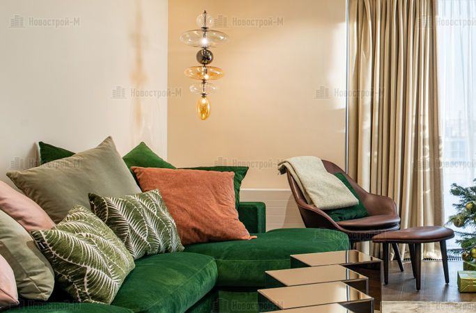 Дополнительные предметы интерьера и декора для оформления представленного апартамента куплены в магазинах Zara Home и H&M на сумму до 100 тысяч рублей. В текущую смету данные предметы не включены, так как они не являются необходимым условием для переезда.