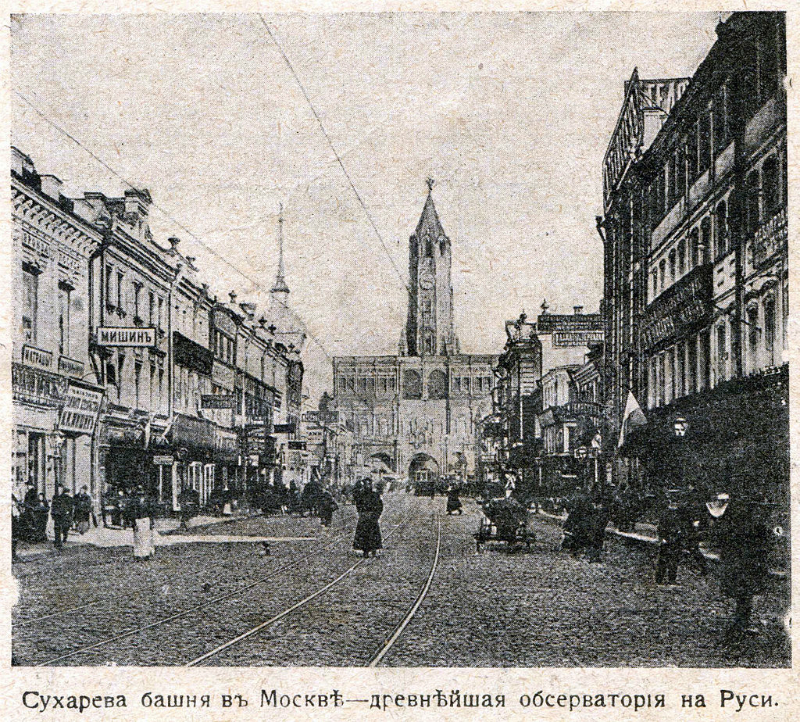 Сухарева башня начала еще прочнее ассоциироваться с чернокнижием с начала 1700-х годов, когда здесь открыли первую в Москве обсерваторию. Ее основателя, одного из самых образованных людей в стране, Брюса, в результате окрестили «колдуном с Сухаревой башни». Люди верили, что в своей лаборатории он изготавливал живую воду.