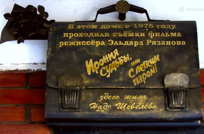Однако в реальности одинаковых домов в двух столицах с таким адресом не существовало. И даже не было 3-й улицы Строителей: в Москве еще в 1963 году ее переименовали в ул. Марии Ульяновой. Многоэтажки обоих героев снимали в московском районе Тропарёво-Никулино (проспект Вернадского, 113, и проспект Вернадского, 125). В начале 2000-х на них установили памятные таблички.