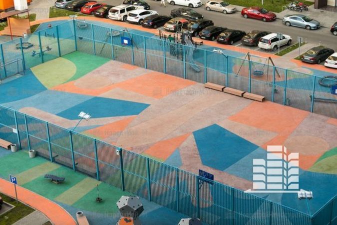 - «Очень оригинально сделаны площадки для детей, точнее футбольные поля! Заметила, что у каждого дома свой рисунок. Ярко и оригинально! И вид из окна во двор получается приятным!»