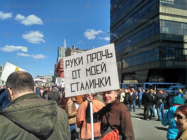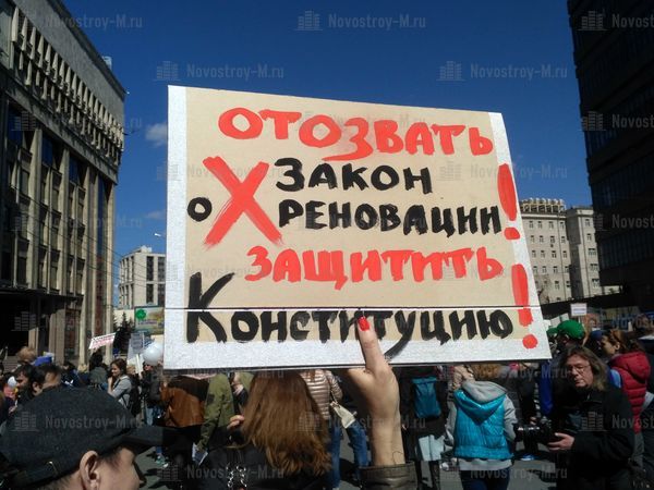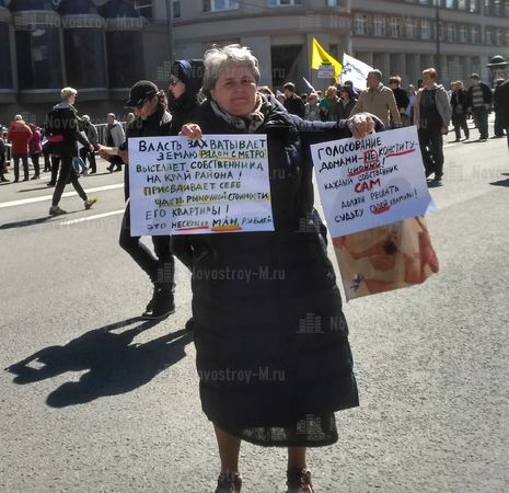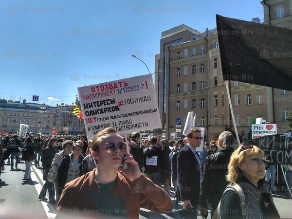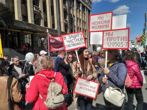 14 мая на проспекте Сахарова в Москве прошел согласованный митинг граждан, которые не поддерживают проект реновации жилья в столице. Организаторами митинга против сноса пятиэтажек выступили журналист Екатерина Винокурова, а также политические деятели Елена Русакова и Юлия Галямина.