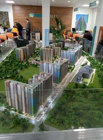 В конце нашей беседы Елена подвела меня к макету комплекса и на нем показала корпуса, в которых мы выбирали варианты, чтобы я понимала, куда будут выходить окна и остальные нюансы. К макету мы подошли в конце нашего общения, потому что в начале у макета было очень много людей. В офисе был аншлаг, возможно, из-за того, что это был выходной день, а возможно из-за того, что новостройка популярна.