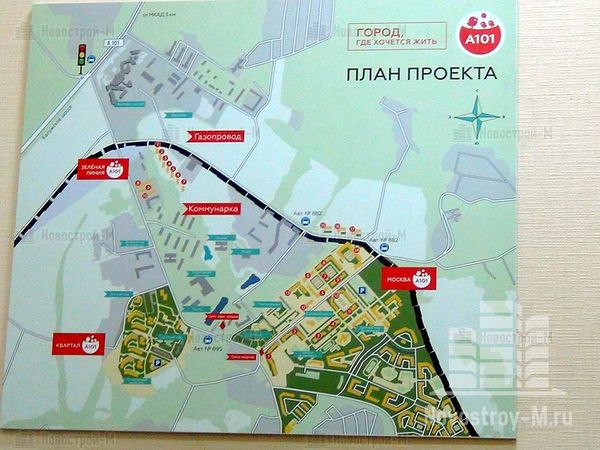 Итак, добраться до ЖК «Москва А101» можно по Калужскому шоссе, проехав 3 км и повернув налево. Далее по единственной дороге нужно проехать около 1,5 км. Ее, кстати, сейчас расширяют до четырех полос, соединяют с районом Бутово и в будущем сделают частью трассы Солнцево – Видное, так что ехать там можно только по узенькому участку и буквально гуськом. В перспективе, конечно, будет лучше.