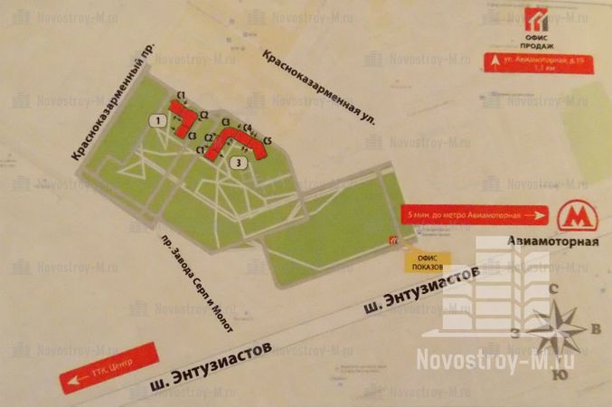 В случае с ЖК «Петр I» слова в рекламном буклете и на сайте ГК «Мортона» о том, что жилой комплекс находится «всего в 5 минутах ходьбы от станции метро «Авиамоторная» соответствуют действительности. Я проверила это лично, и должна сказать, что будущим новоселам-пешеходам в этом плане очень повезло, тем более, что метро «Авиамоторная» всего в двух станциях от кольца.