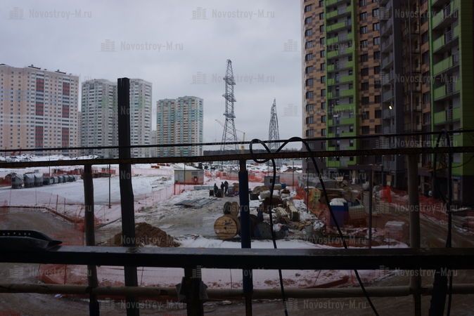 Поездка на стройку была довольно любопытной. Мы имели возможность посмотреть и на ЛЭП, и на строящиеся дома. ЛЭП действительно переводится под землю – часть опор на участке, ближе к офису продаж, ещё стоит, но работа по их демонтажу ведётся. Также мы могли наблюдать финальную стадию строительства корпусов № 3 и № 4, работы на корпусе № 8. Надо сказать, что на стройке довольно оживлённо: много занятых рабочих, техники, работа кипит.