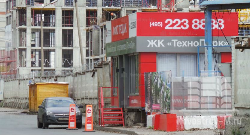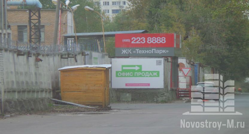На Т-образном перекрестке уйти направо и.. дальше Est-a-Tet предлагает двигаться до «ТехноПарка», который появится с левой стороны. Но, если повернуть на этом перекрестке направо, упираешься в шлагбаум, а по правую руку идет стройка метро «Технопарк». Пытаться прорваться сквозь охрану я не стала, оставила машину и через бизнес-центр прошла до офиса продаж.