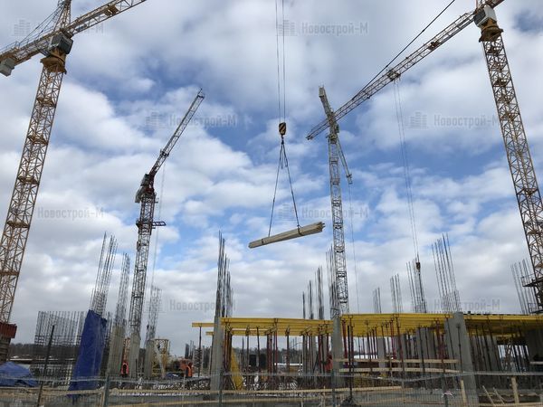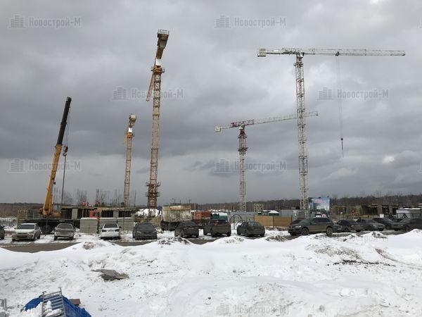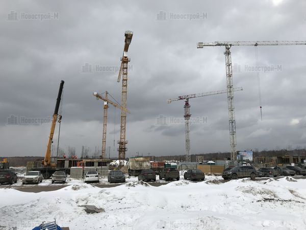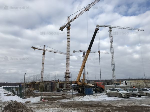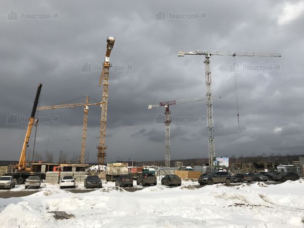 Корпус 7 - 12-этажный, секции корпусов 4, 5 и 6 будут высотой от 12 до 14 этажей. Корпус 4 сейчас на стадии строительства первого этажа, для корпуса 5 устанавливается фундамент и начинается строительство первого этажа. Для корпусов 6 и 7 в данный момент разрабатывается котлован. Завершение строительства первой очереди намечено на IV квартал 2019 года.
