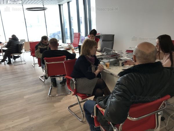 В общем помещении работали четыре менеджера. Меня вежливо встретили и попросили подождать, пока освободится один из консультантов, так как о своем визите я предварительно не сообщал. Я ждал своей очереди около 15 минут – сидел на диване и изучал материалы о ЖК, планировки квартир.