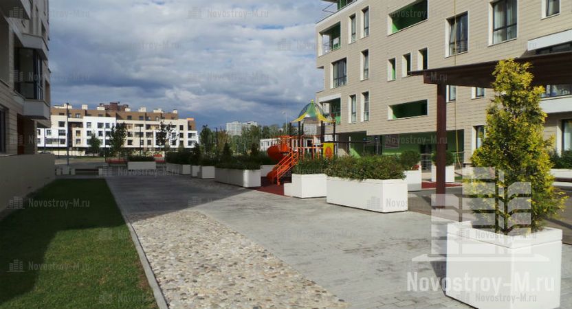 Рядом с построенными домами есть уютные, на мой взгляд, детские площадки. Но ни одного малыша, пока я бродила по территории жилого комплекса, я не увидела. Лишь изредка приоткрывалась шторка в окне какой-нибудь из квартир и можно было заметить жильцов, с любопытством наблюдающих за мной. Есть здесь и патио, и места для занятий спортом, но в самый разгар дня нигде нет людей, что меня удивило и поразило одновременно.