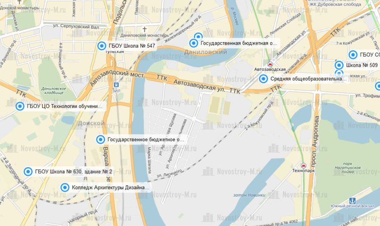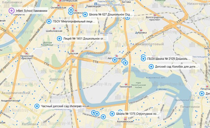 Параллельно со следующими очередями возведут еще 1 школу и 11 пристроенных детских садов. Сейчас сложно сказать, хватит ли мест в этих объектах всем детям жителей, поэтому я обратилась к карте. Она показала мне 2 общеобразовательные школы, но обе они находятся не в пешей доступности от ЖК Zilart (лишь 1 школа у метро «Автозаводская», все остальные по ту сторону Москвы-реки).