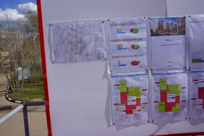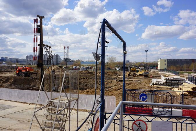 Застройщики позаботились о потенциальных покупателях, создав удобную смотровую площадку – поднятая над забором, она позволяет с комфортом наблюдать за ходом работ. Также там можно ознакомиться с графиком работ (судя по нему, в сроки строители укладываются). Обращает на себя внимание чистота на стройплощадке, немногочисленные деревья бережно сохранятся, их огородили.